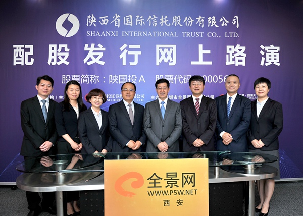 中信建投證券股份有限公司保薦業(yè)務(wù)負(fù)責(zé)人、董事總經(jīng)理劉乃生在推介致辭中指出,陜國投是一家有著三十多年的穩(wěn)健經(jīng)營歷史的信托公司,是國內(nèi)首家上市的非銀行金融企業(yè),中信建投對(duì)陜國投的未來發(fā)展充滿信心,相信陜國投能夠抓住本次配股的發(fā)展機(jī)遇,進(jìn)一步充實(shí)資本金實(shí)力,提高固有資產(chǎn)運(yùn)營效益,支持信托業(yè)務(wù)做優(yōu)做強(qiáng),創(chuàng)造更大的經(jīng)濟(jì)效益,給廣大投資者帶來滿意的回報(bào)。