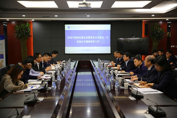 12月4日下午,中國信托登記有限責(zé)任公司董事、總裁張榮芳一行來我公司調(diào)研交流。公司總裁姚衛(wèi)東,黨委委員、總會計師賈少龍,副總裁王曉雁及相關(guān)部門負(fù)責(zé)人等參加座談。