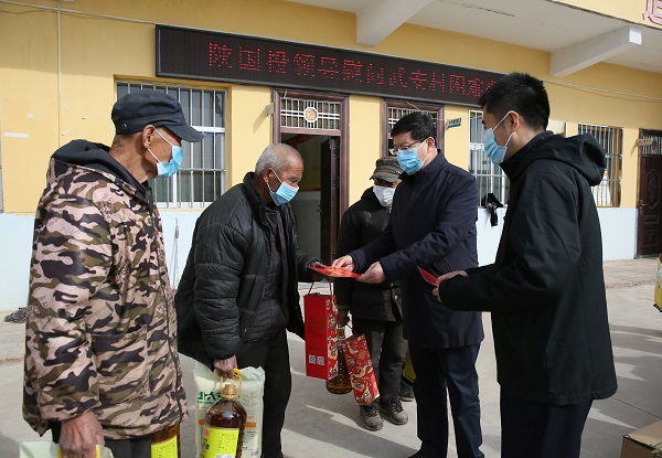 薛季民首先向公司包扶的14戶低保戶、五保戶送上米面油慰問品和公司印制的春聯,還為今年家庭大病的楊進坤、姬俊民兩位特困戶每人送上500元慰問金,細致詢問鄉(xiāng)親們生產生活和身體健康狀況,代表公司黨委祝大家闔家幸福,過一個祥和幸福的春節(jié)。