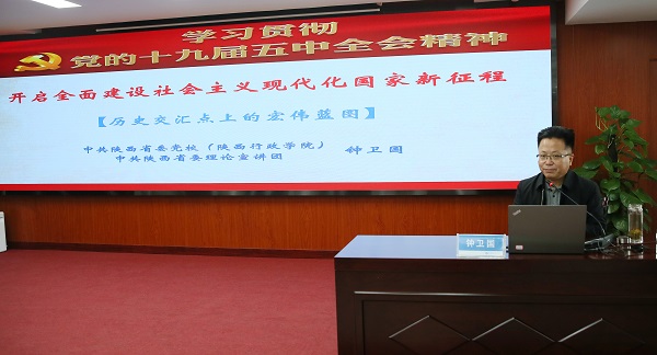 宣講以《開啟全面建設(shè)社會(huì)主義現(xiàn)代化國(guó)家新征程——?dú)v史交匯點(diǎn)上的宏偉藍(lán)圖》為題,圍繞“深刻認(rèn)識(shí)我國(guó)進(jìn)入新發(fā)展階段的重大意義、有利條件和重要特征”“準(zhǔn)確把握2035年遠(yuǎn)景目標(biāo)和‘十四五’時(shí)期我國(guó)發(fā)展的指導(dǎo)方針、主要目標(biāo)、重點(diǎn)任務(wù)”“牢牢把握構(gòu)建新發(fā)展格局的戰(zhàn)略構(gòu)想和重要著力點(diǎn)”“堅(jiān)持黨的全面領(lǐng)導(dǎo),動(dòng)員各方面力量為實(shí)現(xiàn)‘十四五’規(guī)劃和2035年遠(yuǎn)景目標(biāo)而團(tuán)結(jié)奮斗”等四個(gè)方面,對(duì)黨的十九屆五中全會(huì)精神進(jìn)行了系統(tǒng)闡述和深入解讀。