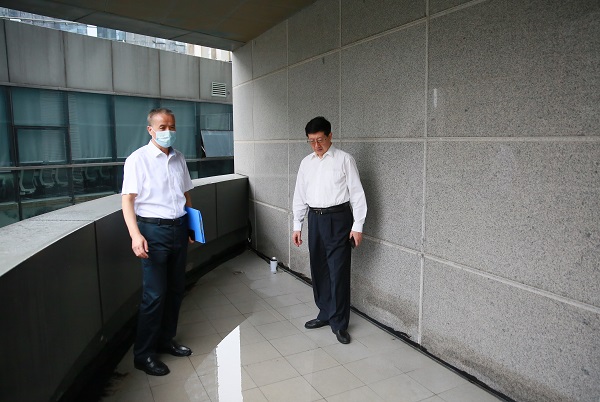 7月26日,黨委書記、董事長薛季民帶隊(duì)對公司防汛安全及疫情防控工作進(jìn)行了檢查,組織辦公室、后勤服務(wù)中心相關(guān)人員前往公司總部檔案室、職工餐廳、地下車庫及裙樓露臺(tái)等重要設(shè)施及低洼易澇點(diǎn)進(jìn)行實(shí)地查看,逐一詢問了相關(guān)排水管道、排污管網(wǎng)、水電設(shè)施等情況,要求后勤服務(wù)中心及時(shí)對存在隱患的部位進(jìn)行檢修,保證人防、物防、消防等設(shè)備正常運(yùn)轉(zhuǎn),確保防汛不留死角,安全不留隱患。接著,薛季民一行對公司辦公場所疫情防控工作進(jìn)行了檢查,要求相關(guān)人員嚴(yán)格落實(shí)常態(tài)化疫情防控要求,繼續(xù)做好體溫檢測、健康碼查驗(yàn)登記等疫情防控措施,最大限度消除疫情傳播風(fēng)險(xiǎn),堅(jiān)決維護(hù)好來之不易的防控成果。
