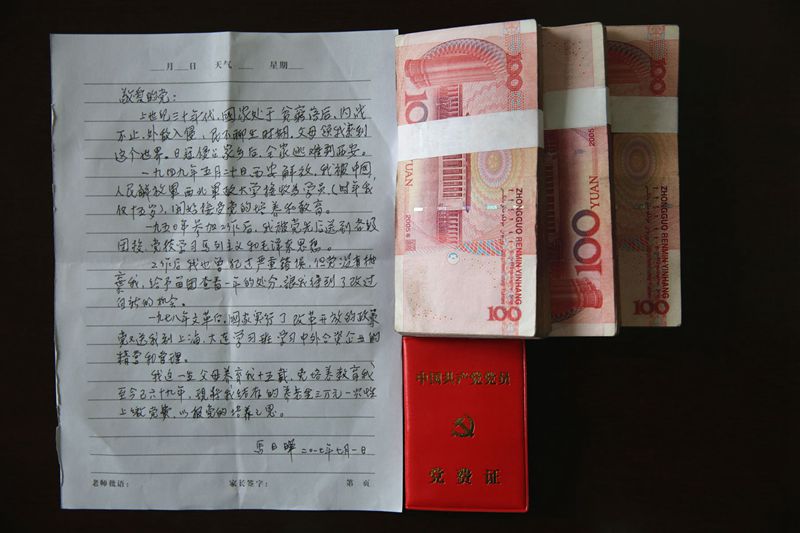 同時(shí),他還上交了一份手寫的思想?yún)R報(bào),在思想?yún)R報(bào)中他寫到“我這一生,父母養(yǎng)育我十五載,黨培養(yǎng)教育我至今已六十九年,現(xiàn)將我結(jié)存的養(yǎng)老金三萬元一次性上繳黨費(fèi),以報(bào)黨的培養(yǎng)之恩”。思想?yún)R報(bào)字跡工整認(rèn)真,看得出來寫的有些顫抖,無聲地道出了一名老黨員對黨的樸素的感情。
