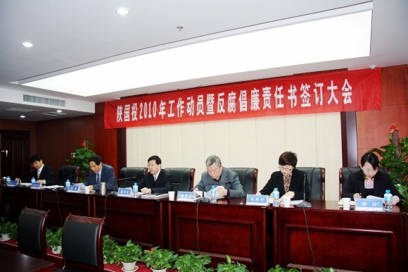 3月1日,公司召開了陜國投2010年工作動員暨反腐倡廉責(zé)任書簽訂大會。公司領(lǐng)導(dǎo)、西安地區(qū)全體員工參加了會議。會議由公司常務(wù)副總裁杜磊主持,黨委書記、董事長薛季民作了動員講話,并對全年工作進(jìn)行了部署。